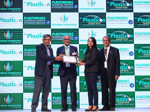 Khushboo chandrakant Doshi was Felicitated with the Plasticon award as a Best Performing Female entrepreneur by Plast India foundation on February 7, 2018 in Gandhinagar