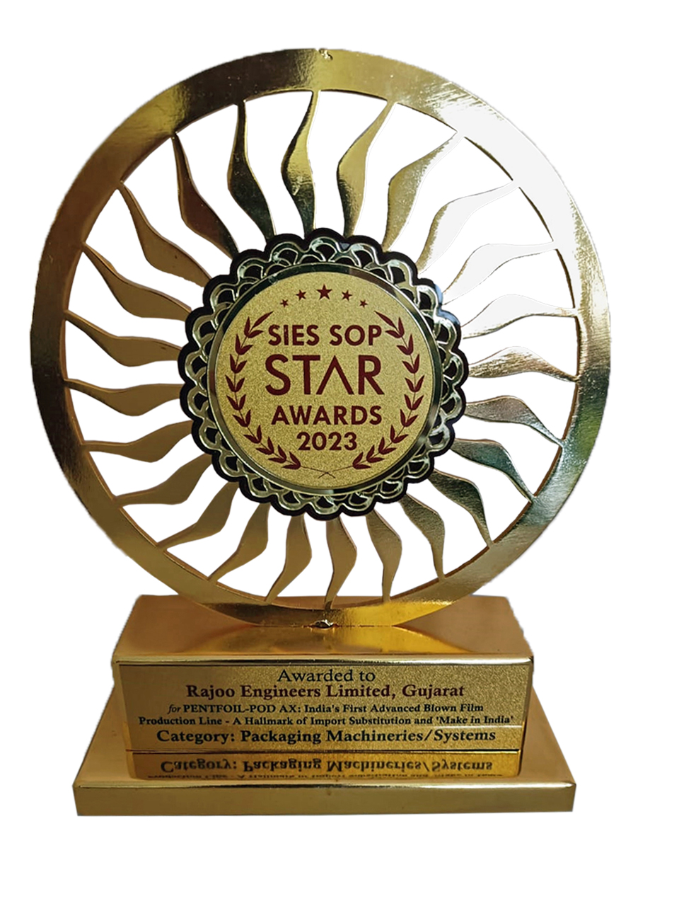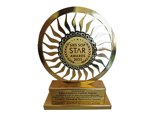 On March 19, 2024, Rajoo Engineers Limited won the SIES SOP STAR 2023 award for PENTAFOIL-POD-AX, a five-layer blown film line for flexible packaging. Presented by the South India Education Society School of Packaging, Mumbai (SIES-SOP), the award recognizes excellence in import substitution and 'Make in India' initiatives, showcasing Rajoo's transformative indigenous technological advancements.