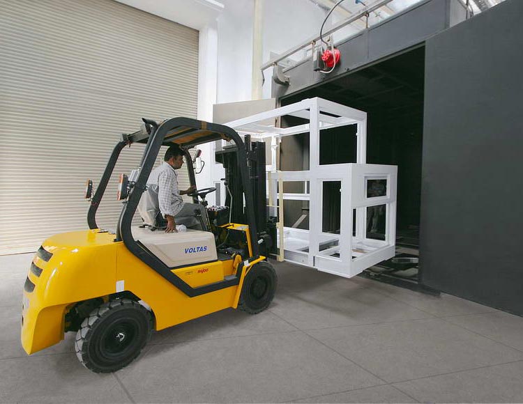 The in-house modern paint shop facility is the first of its kind in the Asian industry. An amply dimensioned shot blasting room and baking oven ensure a long life of paint and improve machine aesthetics.
